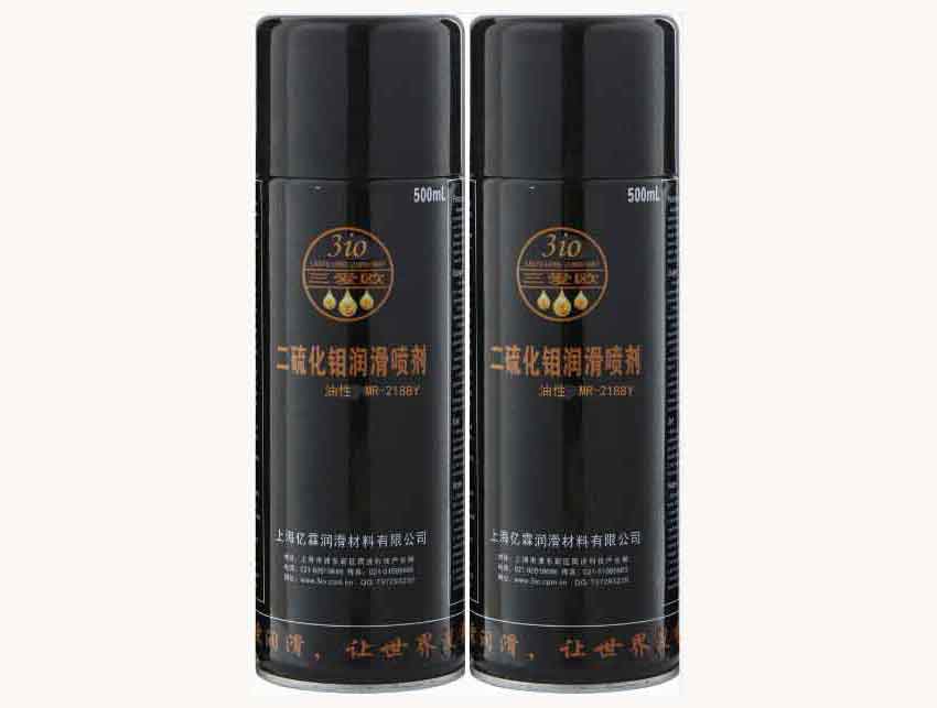 油性二硫化钼喷剂是以深度精制的润滑油调和多种添加剂和溶 剂装入耐压喷雾罐而制成的MoS2润滑剂,具有良好 的抗极压性、防锈性能和润滑性能。